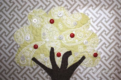 I was just going to use lots of white buttons but found these red ones in my stash so I added them on as little apples.