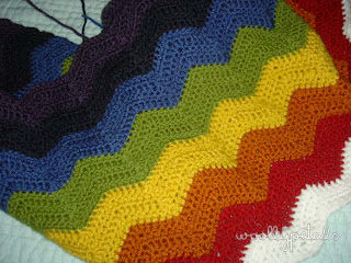 A beautiful rainbow wavy patterned afghan for a friend who just had an adorable baby girl. She is decorating the nursery in Noah's ark, so I thought rainbows would be appropriate.