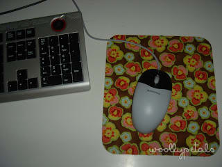 This is a mousepad I covered my self to go with my new office area, and new computer. It turned out pretty good, I used stitch witchery. The only issue is that the edges are starting to fray so I am wondering if I should use some fray check. Couldn't hurt, right!
