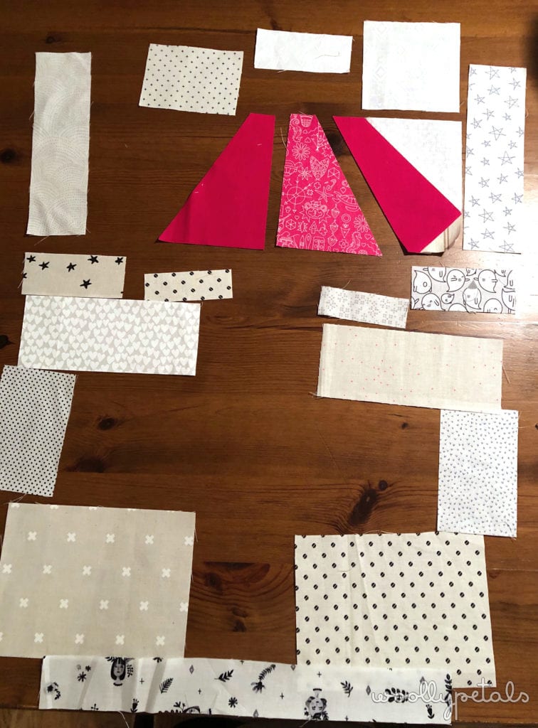 First, when I am sewing a block up I like to lay out the block with all the pieces in there place. The diagrams on page 2 (all the variations) and page 3 show you where each piece you have goes in the block and I find if I lay out the block in that way I can just place the diagram near me to reference the piece letters if needed.
