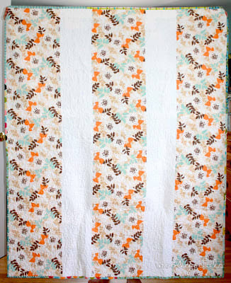 The back is a coordinating fabric I cute in three strips vertically and separated by white strips. Simple and cute.