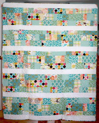 It's a lap size quilt to cuddle up with on the sofa while reading a good book or cuddling with a loved one. This was the inspiration quilt she picked, so I took that and started working on strips. But once a bunch where finished and I was laying them out it seemed like to much pattern, so I separated groups of pattern by strips of white. Oh it made such a difference.