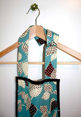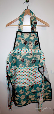 This is a full apron with an adjustable neck strap, and a waist tie. It is a home decor cotton fabric which is heavier and better for spills. I added a giant pocket on the front with two compartments. All of the seams on the inside are hidden or covered so there are no raw edges.