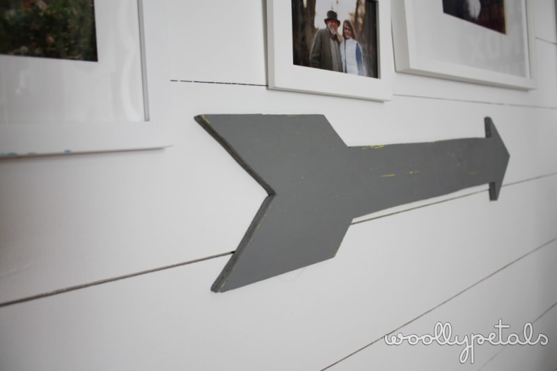 I cut the arrows out several weeks ago with my jigsaw not knowing where I would hang them. But once I started the wall project I knew they would fit in perfectly, they are painted a neon yellow with grey on top, then sanded down so the yellow pops through.