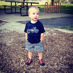 Luke is taken with putting his hands in his pockets lately / Watching a Choo Choo at the park / Cooking his apple?!?!