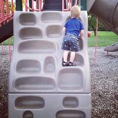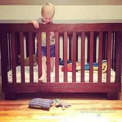 He is learning to climb more at the park, yikes! / run-walk with a couple park breaks / I finally lowered his crib the last notch, then we played catch with his animals