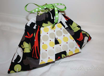 I made a fun little bag with his first initial on the front to store them.