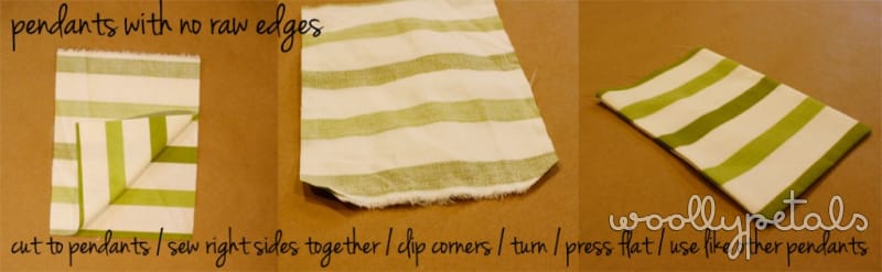 You could cut your pendants to have a shaped bottom or sew them as below so that the garland has no raw edge pendants.