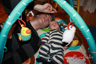 Luke and Daddy exploring Luke's new farm play mat!