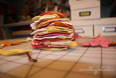 On my cutting table is a pile of felt leaves sitting with an already made felt garland like this one found here and here. One is for a gift the other is for me. : )