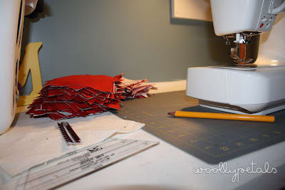 Next to my sewing machine is a pile of quilt squares for a christmas present quilt! ;)