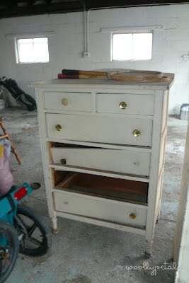 A trash picked old dresser that I will fix, paint, and use in a nursery someday.