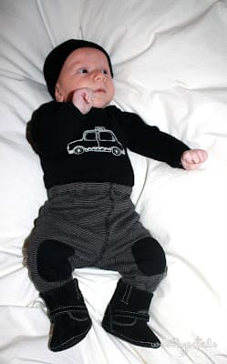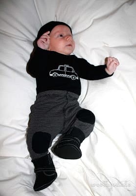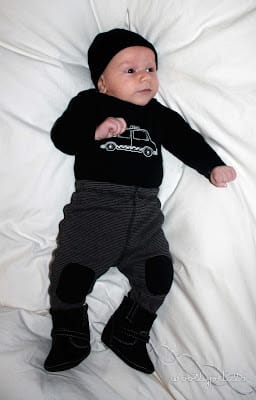 So glad I found it as he won't be in this size for much longer. But it was like a little shopping spree as I had forgotten about all these clothes. :) Anyway since I shopped at resales I got more clothing pieces than outfits, and some things like these black boots I just bought because they were cute and $1 not because they are practical at all. This outfit happened to be in that forgotten drawer, and the boots and hat are from resales bought just because. :)