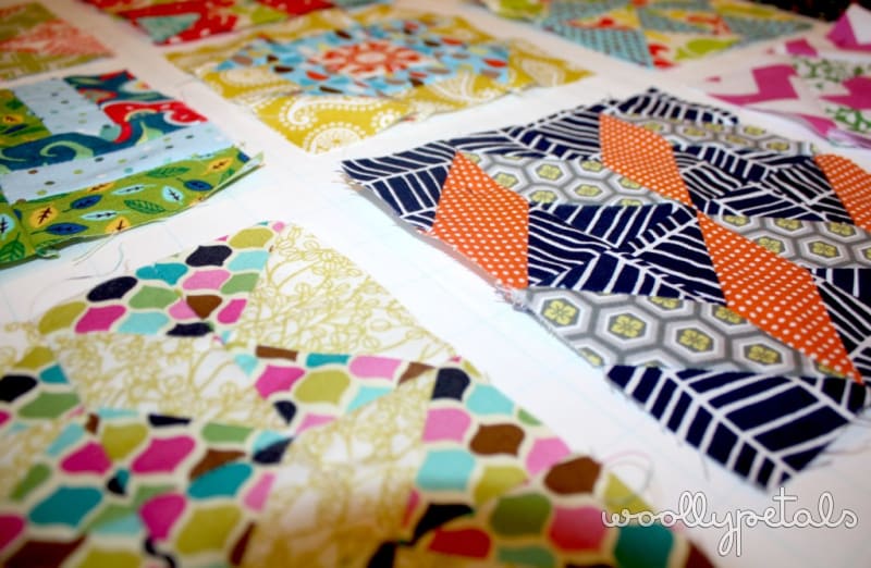 Anyway. Here are all my blocks so far. I am sticking with going as scrappy as possible, yet sticking to brighter bolder colors and prints. I love seeing them all come together.