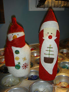 These guys are for my up coming craft show. I am working on lots of winter and christmas stuff. They are just protypes so I will probably change the embroidery, or accessorize differently with each one.