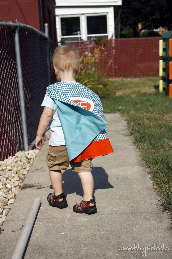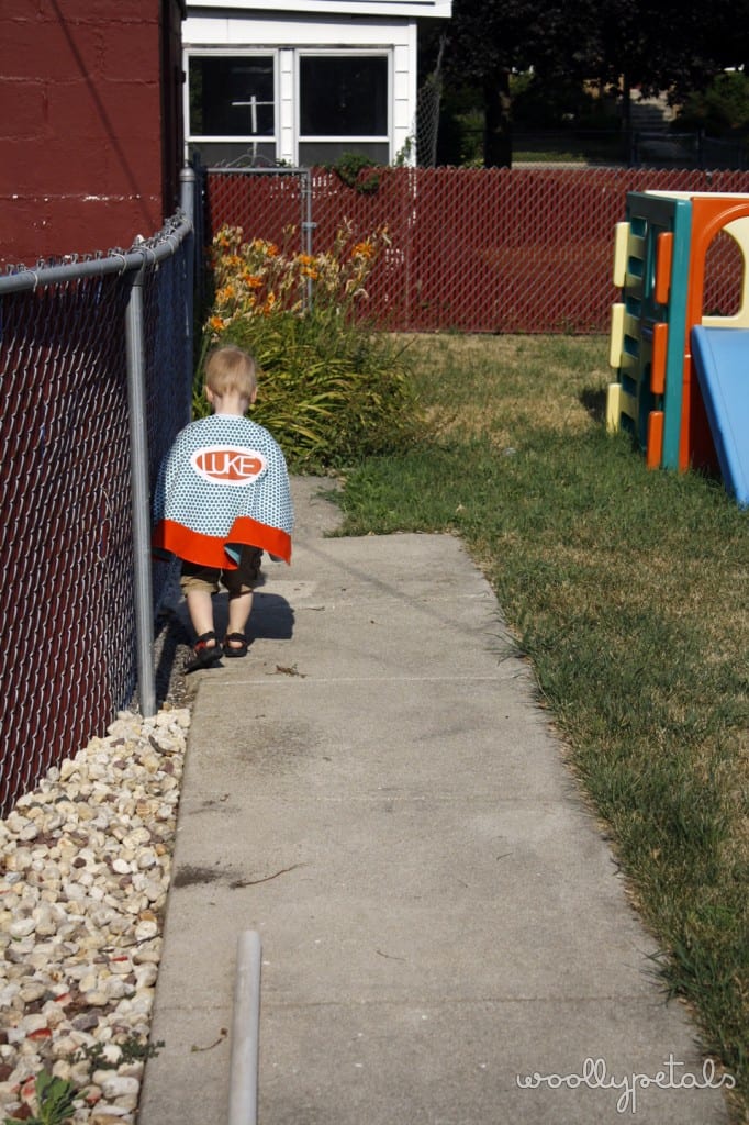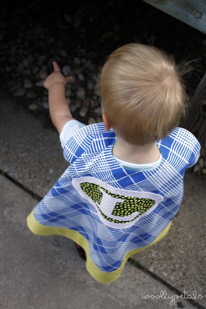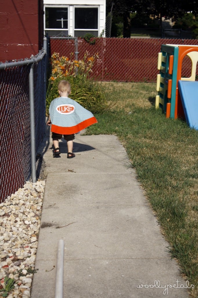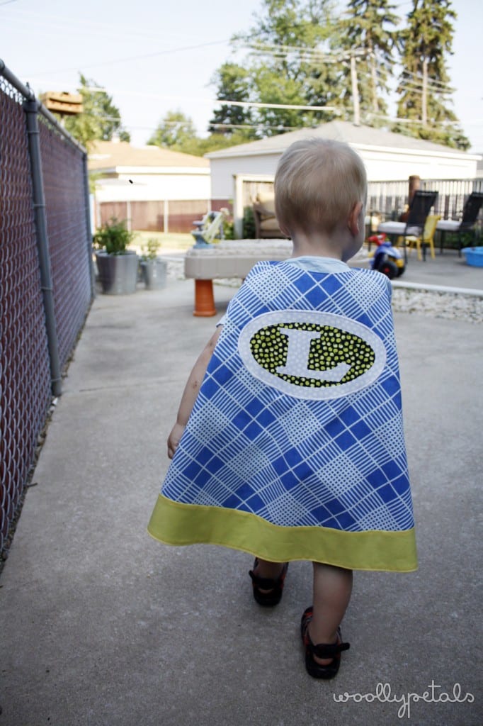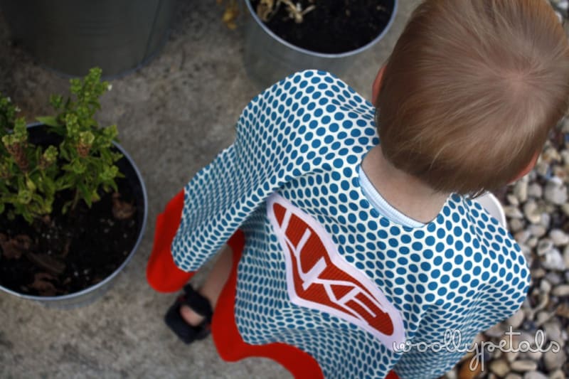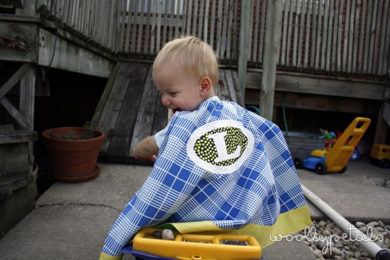This little friend just happens to have a name that begins with L too. It was tempting for this superhero to keep this cape as a spare, but alas he is a kind hearted hero, and the cape ran a little big for his older friend so he gifted it as planned.