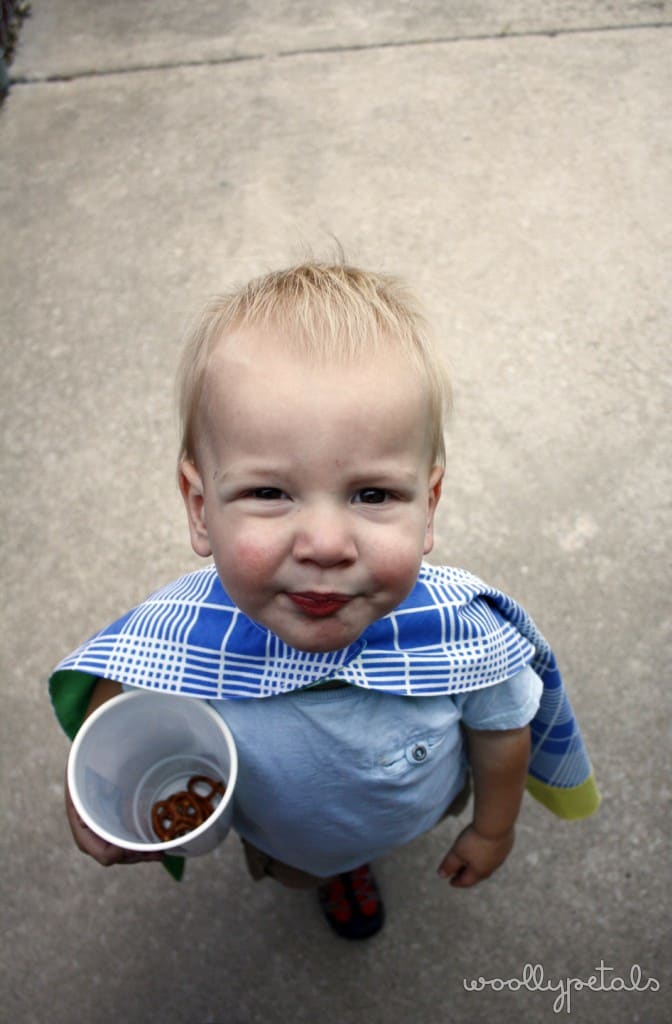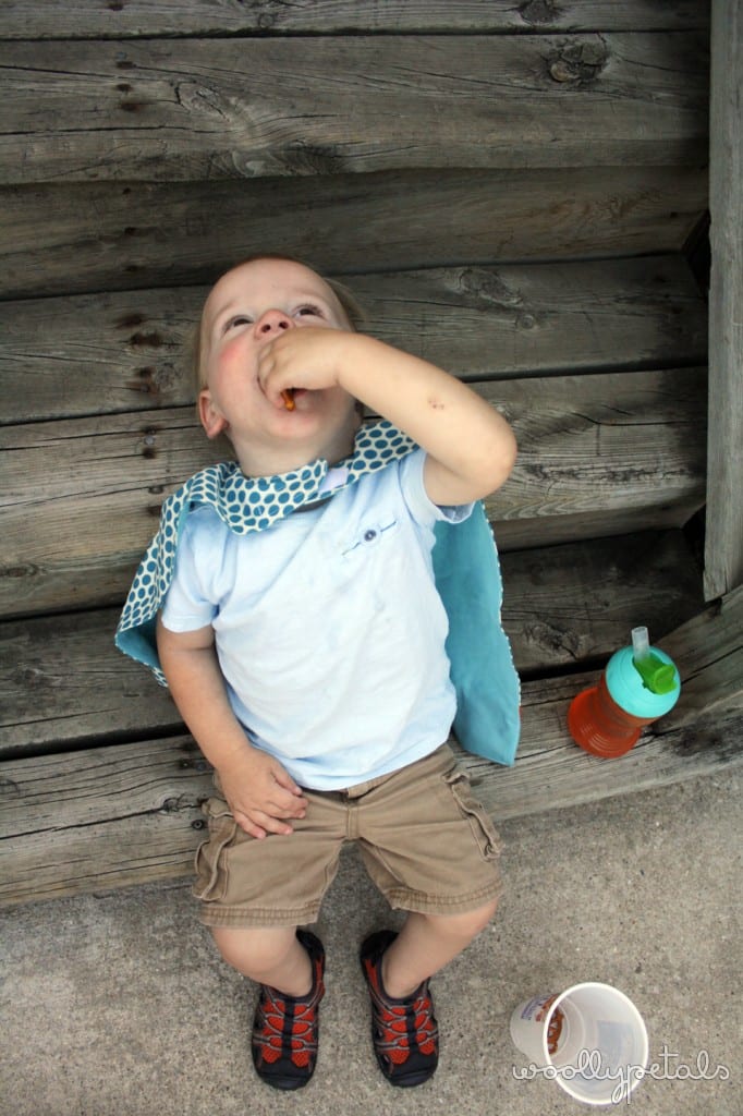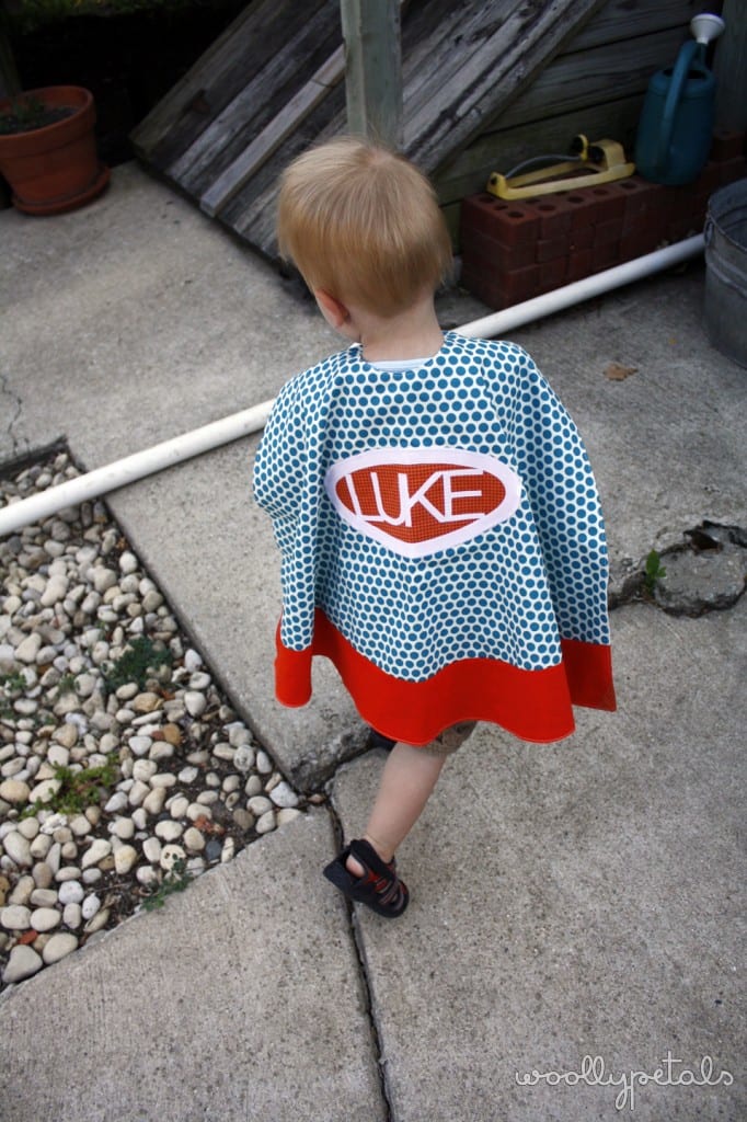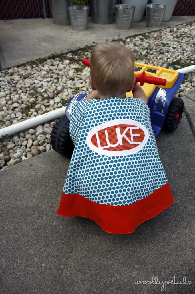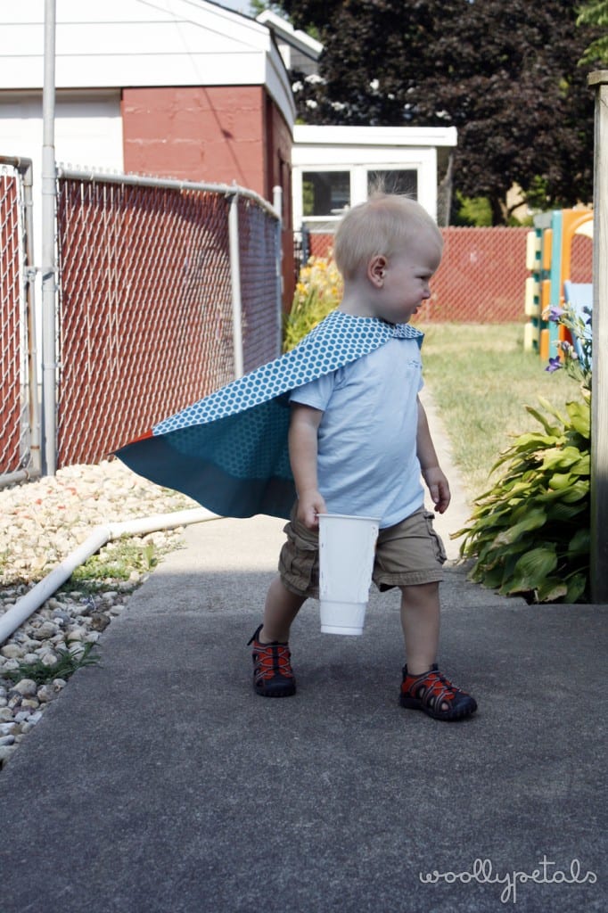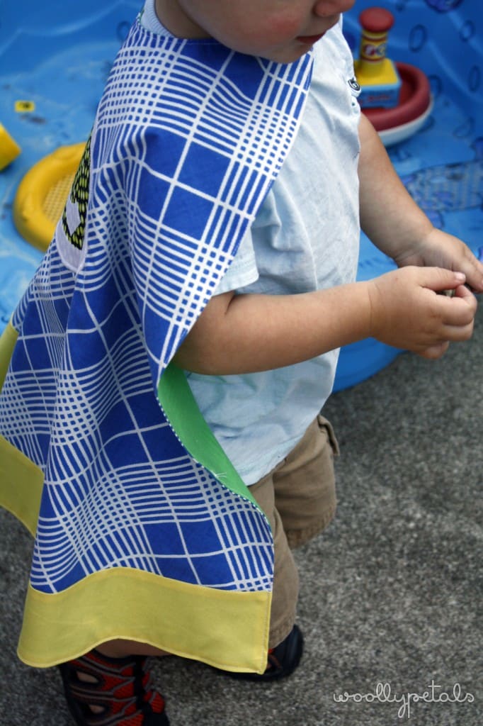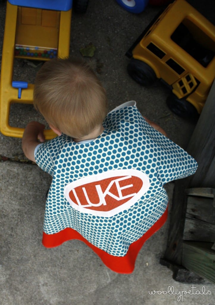 This little friend just happens to have a name that begins with L too. It was tempting for this superhero to keep this cape as a spare, but alas he is a kind hearted hero, and the cape ran a little big for his older friend so he gifted it as planned.