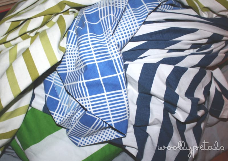 I found this pile of Sheets at Savers. Love them all. I have been on the hunt for simpler and more boyish vintage sheets lately since I have a tub of floral sheets and a baby boy. I hit the jackpot this week. The stripes are destined for a quilt back and to be made into some simple play mats for the Luke, and the plaid has a couple spots on it so I will cut out the usable yardage and use it as regular fabric.