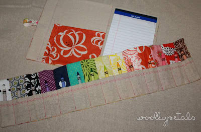 A fun birthday gift for a sweet little girl. I whipped this up with no pattern. It was pretty labor intensive so I will have to come up with some time savers next time. But I think she will like it. A notebook holder with some pockets, and a roll of crayons.