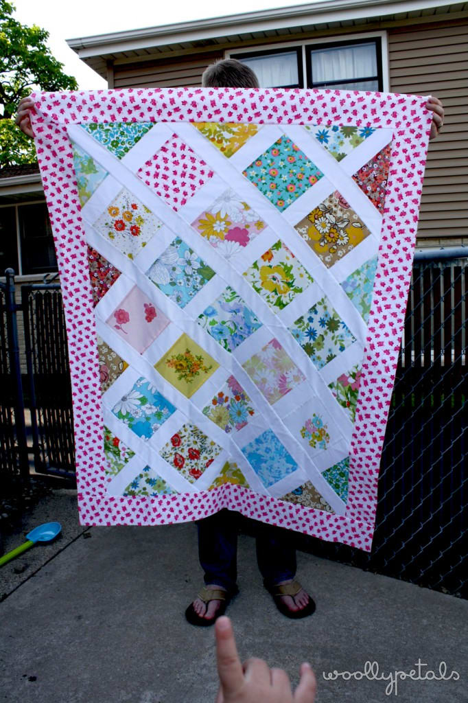 And the last one, with my two helpers. This was something I came up with knowing I wanted to showcase all the vintage sheets I use for fabrics. I call it my garden lattice quilt. :) I would say it's basically like this one of Ashley's, She is a wonderful inspiration!