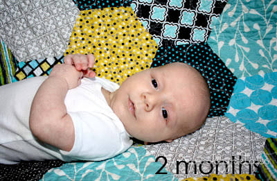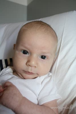 He weighs 11lbs 8oz in the 50% percentile, he is 23 3/4″ long in the 60% percentile, and his head is in the 20% percentile. :) He is a little peanut!